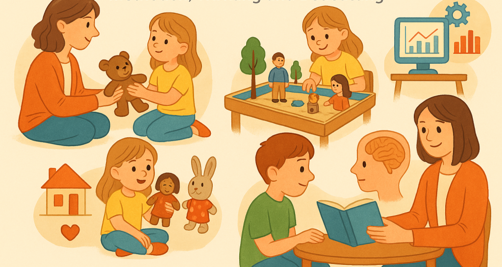 Kinder schlüpfen in unterschiedliche Rollen oder lassen ihre Spielfiguren sprechen. Dadurch können sie Sorgen und Ängste ausdrücken. Die Beraterin beobachtet oder begleitet sanft, je nach Situation.